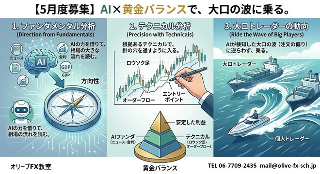 オリーブFX教室では、この最新AI技術を「自分だけの必須アイテム」として使いこなすための本物のスキルを、基礎から丁寧にお伝えします。